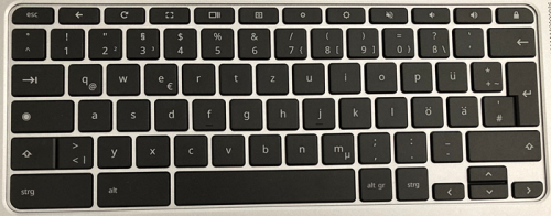 Bei den Chromebooks, die an der Hochschule zur Verfügung stehen, handelt es sich um 14-Zoll-Laptops, die mit den Betriebssystem ChromeOS laufen. Die Geräte sind für Webanwendungen optimiert. Die Tastatur unterscheidet sich nicht von einer herkömmlichen Laptop-Tastatur.