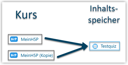 Wenn Sie die Aktivität H5P im Kurs duplizieren und in dieser Aktivität ein Link (Verknüpfung) auf den Inhaltsspeicher besteht, wird der Inhalt im Inhaltsspeicher nicht kopiert.