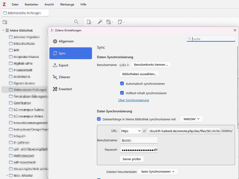 Einrichtung von WebDAV Sychronisierung in Zotero